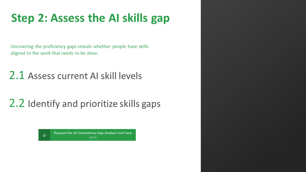 โœ… ๐˜ผ๐™จ๐™จ๐™š๐™จ๐™จ ๐™‹๐™ง๐™ค๐™›๐™ž๐™˜๐™ž๐™š๐™ฃ๐™˜๐™ฎ ๐™‚๐™–๐™ฅ๐™จ: Identify the high-level AI proficiency gaps in your workforce and focus on key competencies.